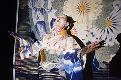 The performance scheduled for May 22, The Double Pop Songs, features a selection of Japanese pop songs stripped of their music, which lyrics are projected onto the artist's body clad in a white kimono, as if it were a screen.