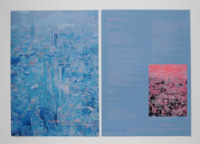 This exhibition "It's Our Tokyo Stories." is mainly composed of the series of Tokyo landscape based on the pictures shoot each time she returned to Japan. To whom live in, "Tokyo" is a town where our little histories accumulates and a stage of our daily life. The stream of history that this country and this town create is connecting to individual histories, and before long, weaves the "story" that reflects contemporary society. The landscape of Tokyo, where stories and small emotional ups and downs are happening daily, would bring up different chroma with Karasumaru's colors and lines.