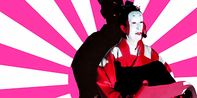 The performance scheduled for May 22, The Double Pop Songs, features a selection of Japanese pop songs stripped of their music, which lyrics are projected onto the artist's body clad in a white kimono, as if it were a screen.