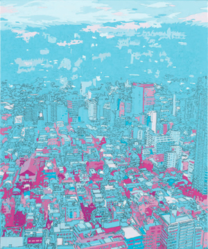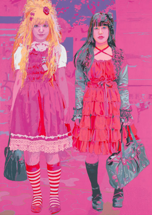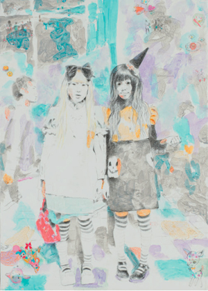 Her paintings are created from photographic images, often taken by the artist herself, in which family portraits, teenagers in the street in the quarters of Tokyo where young people hang out such as Shibuya, Harajyuku, Ginza interchange with urban views of Tokyo, she shows also " Tokyo landscape series.