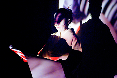 In the performances, which combine Japanese theatre with western recital, as well as in the pictorial works, the memory of traditional Japanese painting coexists with Nipponese pop culture, with particular reference to Manga and Anime (Japanese cartoon) characters.