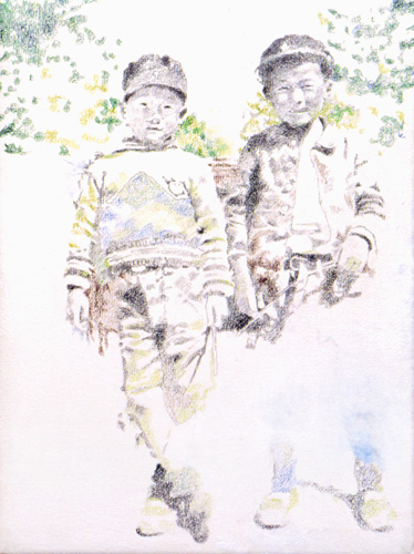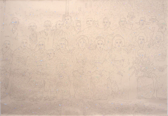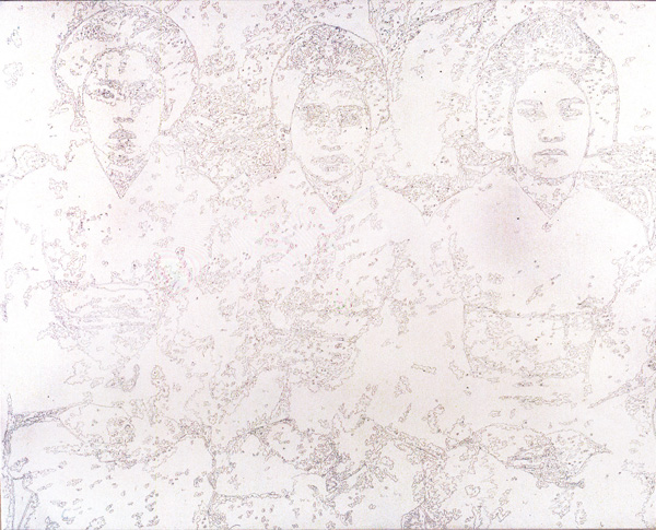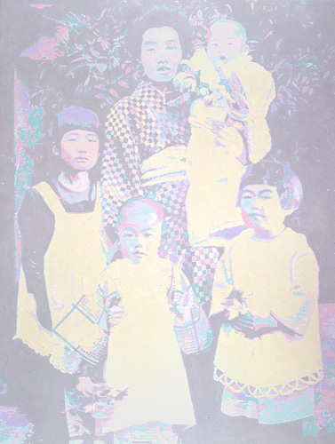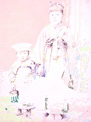 Family scenes are pictured in the images of this series. They are evanescent or contrasted, a strong bond with the past and the culture of the artist.