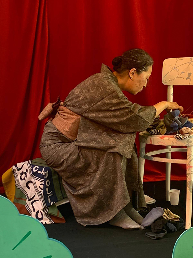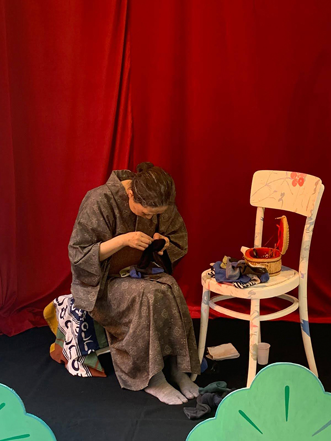 Inspired by this coaching program, Yumi has devised her own performance project targeting those who have been facing uncertainty and anxiety during the pandemic. Yumi, through her performance, encourages the audience to enhance their mental and physical strength and discover the courage to live positive lives. Yumi expresses people’s everyday activities from various angles and different view points. Meditative activities, such as hand-sewing and peeling potatoes, may reflect the desire to flee from anxiety.
